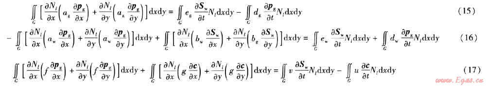 式(15)~(17)為二維氣水滲流及氣體擴(kuò)散有限單元法計(jì)算的基本方程。