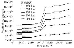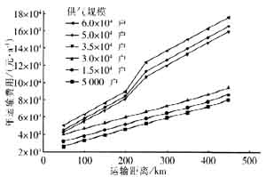 Fig.3 Variation curve of annual transport coat with transport distances