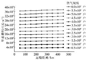 Fig.4 Variation curve of annual transport cost with gas supply scale