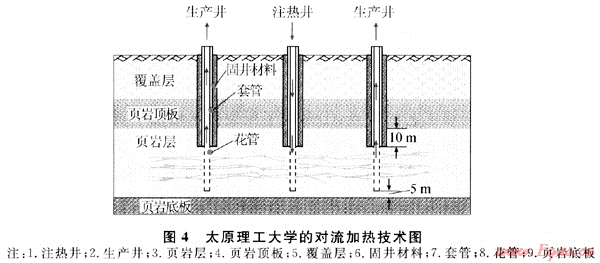 利用高溫?zé)N類氣體對流加熱油頁巖開采油氣技術(shù)是太原理工大學(xué)發(fā)明的一種原位開采技術(shù)(圖4)。