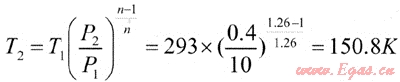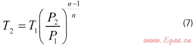 由式(6)求出絕熱非等熵過程的指數n后,便可由下式算出膨脹降壓后天然氣的溫度[12]: