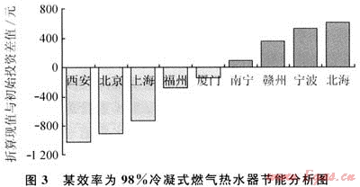 2005年起,國內(nèi)部分熱水器廠家開始生產(chǎn)銷售冷凝式熱水器,其中部分產(chǎn)品的熱工性能已達(dá)到或超過國外同類產(chǎn)品?,F(xiàn)采用凈現(xiàn)值法對(duì)冷凝式熱水器的節(jié)能情況做一簡(jiǎn)略分析。