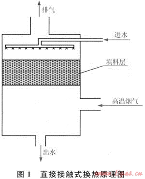 直接接觸式換熱就是指將燃燒后的高溫?zé)煔庵苯优c水接觸進(jìn)行換熱(圖1)。首先將進(jìn)水通過噴嘴均勻分流,然后將分流后的水噴入由陶瓷或金屬片等裝填的填料塔內(nèi),高溫?zé)煔庥上露贤ㄟ^填料層,從而使煙氣與水在填料層內(nèi)發(fā)生逆流接觸式換熱。由于填料層的作用,大大增加了煙氣與水的接觸面積,同時(shí)延長(zhǎng)了煙氣與水在逆流換熱過程中的接觸時(shí)間,因此這種換熱方式在化工領(lǐng)域應(yīng)用比較廣泛。當(dāng)將其用于熱水器時(shí),需要解決幾個(gè)關(guān)鍵問題:首先是由于燃?xì)馊紵髸?huì)產(chǎn)生SOx、NOx等酸性氣體,當(dāng)這些氣體與水直接接觸時(shí)會(huì)溶于水,而熱水是要與人的皮膚直接接觸的,因此使用這種換熱方式的燃?xì)鉄崴饕话阒荒苁褂锰烊粴饣蛘咭夯蜌猓胰紵鞅仨毥?jīng)過特殊的設(shè)計(jì),同時(shí)配合復(fù)雜的水質(zhì)處理系統(tǒng);另外,填料塔的換熱效率將對(duì)整個(gè)換熱器的效能起決定作用,而控制煙氣的離塔溫度直接影響填料塔的換熱效率,當(dāng)煙氣的離塔溫度超過煙氣的露點(diǎn)溫度時(shí),換熱效率將急劇下降。