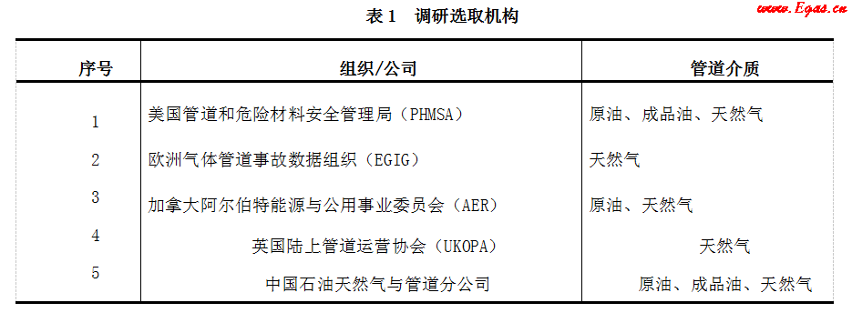 本文調(diào)研分析了美國、歐洲、加拿大、英國以及中國石油天然氣與管道分公司所轄長輸管道(表 1)失效情況和失效原因,對我國正在開展的隱患整治和管道保護工作有借鑒作用。