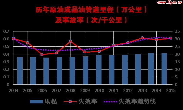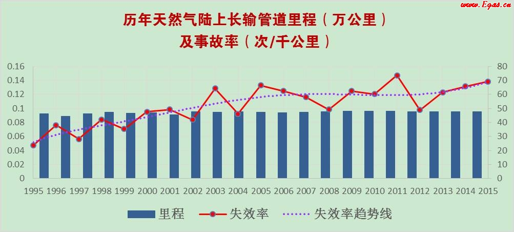 截至2015年,美國油品管道約21×104km,天然氣管道約48×104km,是世界上擁有管道里程最長的國家。其管道和危險材料安全管理局(PHMSA)所管理的管道失效數(shù)據(jù)庫,定期更新發(fā)布近20年來的管道失效統(tǒng)計數(shù)據(jù)及每起失效的詳細信息。