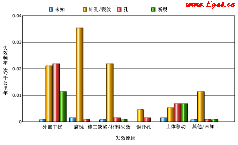 (1)受經(jīng)濟發(fā)展現(xiàn)狀制約,打孔盜油成為我國管道失效的最主要因素,而國外卻較少發(fā)生。隨著相關(guān)立法和宣傳的不斷加強,這一失效因素的比例將不斷降低。