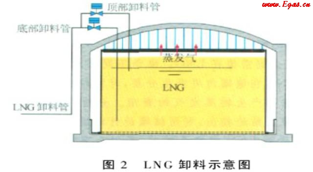 卸船時,當(dāng)船上的LNG密度比儲罐內(nèi)LNG密度重時,從頂部卸料管進罐。反之,從底部卸料管進罐,這樣可以促進不同密度的LNG在儲罐內(nèi)自行混合,消除分層。