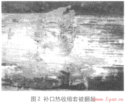 (2) “3PE”防腐層需采用聚乙烯熱收縮套補(bǔ)口,補(bǔ)口的凹陷或搭接處的凸起部分,使其在穿越時(shí)容易被劃傷甚至被拉脫擠落(圖2)。