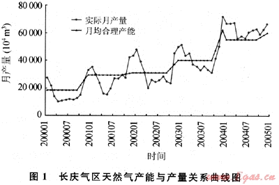 我國(guó)天然氣開(kāi)發(fā)利用正處在發(fā)展的初期,產(chǎn)量和用氣量增長(zhǎng)很快,但安全穩(wěn)定供氣的基礎(chǔ)設(shè)施尚不完善,利用上游氣田增加產(chǎn)量進(jìn)行調(diào)峰,成為這一階段的主要手段。如長(zhǎng)慶氣區(qū)的目標(biāo)市場(chǎng)基本位于我國(guó)北方,四季溫差變化大,冬夏最為懸殊,主力氣田產(chǎn)量波動(dòng)特別大。統(tǒng)計(jì)分析2000~2003年氣田生產(chǎn)情況,有以下突出的特點(diǎn);一是月產(chǎn)量曲線(xiàn)波動(dòng)明顯,冬季出現(xiàn)明顯的高峰:二是調(diào)峰期提產(chǎn)幅度大,從2000~2003年,年均月產(chǎn)量與調(diào)峰期月產(chǎn)量比較,提產(chǎn)幅度分別為57%、31%,、42%和27%,相應(yīng)調(diào)峰氣量占年產(chǎn)量比例分別為19.6%、11.8%、14.4%和9.6%,調(diào)峰氣量比例逐漸下降的原因,主要是從2001年冬季開(kāi)始,大港儲(chǔ)氣庫(kù)相繼建成并發(fā)揮調(diào)峰作用;三是調(diào)峰期的產(chǎn)量均在氣田合理生產(chǎn)能力之上運(yùn)行,而其他季節(jié)基本在合理生產(chǎn)能力下運(yùn)行(圖1)。