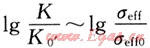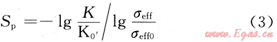 從前面的分析得知低滲透儲層巖石在覆壓實(shí)驗(yàn)中發(fā)生的不是理想線彈性變形,因而按指數(shù)式擬合實(shí)驗(yàn)數(shù)據(jù)相關(guān)性不是最佳。為了能更好地利用實(shí)驗(yàn)數(shù)據(jù),并將其與油氣藏工程相結(jié)合,筆者提出一種新的應(yīng)力敏感評價(jià)指標(biāo)表征低滲透巖樣滲透率與有效覆壓的關(guān)系[10~11]: