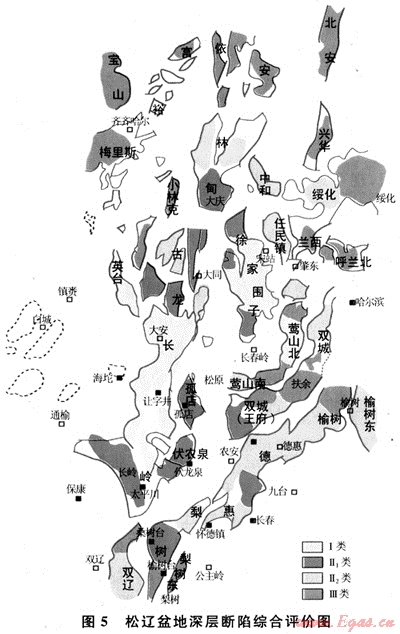 松遼盆地深層斷陷由于所處構造位置的不同,地質(zhì)結構的多樣性,后期改造的差異,它們分別具有不同的構造特征及油氣成藏條件。每一斷陷又由多個次級洼陷組成,不同次級洼陷中烴源巖發(fā)育質(zhì)量差異很大。因此,以次級洼陷為評價單元進行斷陷評價更能客觀地評價深層斷陷。以徐西凹陷和哈爾金凹陷為刻度區(qū),根據(jù)盆地深層天然氣成藏條件的研究,以次級洼陷供烴能力、儲集體發(fā)育程度、蓋層封閉能力、斷陷后期改造程度及凹陷中二氧化碳的發(fā)育程度等為凹陷評價基本內(nèi)容,對深層斷陷進行了評價,評價結果見圖5。
