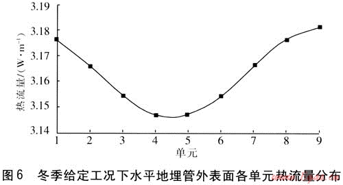 5 水平地埋管外表面熱流量分布