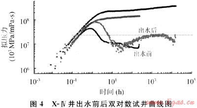 由于啟動壓力梯度的影響,許多井試井解釋出的邊界可能就是這種由于存在著啟動壓力梯度現(xiàn)象而導致的高低滲透層之間的不流動邊界。在實際的開發(fā)中,隨著時間的延續(xù),流動區(qū)域地層壓力的下降,原來未動用的低滲區(qū)域可以得到動用。從試采時間較長的X-Ⅲ井的一年半時間內的先后兩次關井壓力恢復試井解釋看,存在著流動區(qū)域擴大的趨勢,解釋的流動區(qū)域的范圍擴大了40m左右。