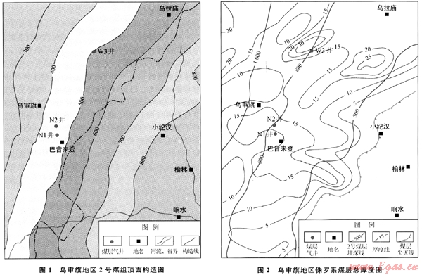 從已鉆的煤層氣井含氣量分析,當(dāng)煤層頂板為泥巖時(shí),煤層氣含氣量較高,未散失,如,N1井和W3井煤層頂板均為泥巖,而其他井由于煤層頂板為砂巖,導(dǎo)致含氣量普遍較低。因此,煤層直接蓋層對(duì)烏審旗地區(qū)煤層氣的保存起著關(guān)鍵作用。