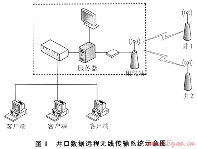 遠(yuǎn)程測試技術(shù)的核心主要在于兩個(gè)方面:①依靠井口數(shù)據(jù)遠(yuǎn)傳技術(shù),在井口安裝壓力變送器對套壓進(jìn)行數(shù)據(jù)采集與傳輸;②建立適合蘇里格氣田實(shí)際的壓力折算模型和計(jì)算系統(tǒng),進(jìn)行試井解釋和分析。圖2是已經(jīng)投入使用的井口數(shù)據(jù)傳輸系統(tǒng)。