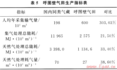 地面工程設(shè)計與工藝技術(shù)方面突出了規(guī)模性、適應(yīng)性,先進性、科學(xué)性、安全性,以經(jīng)濟效益為指導(dǎo)思想,采用了8項新工藝新技術(shù),對地面工程設(shè)計進行了優(yōu)化,與國內(nèi)同類氣藏相比(表5),各項指標(biāo)均達到先進水平[5~6]。