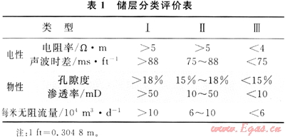 利用三維地震、巖心、區(qū)域?qū)有騽澐值荣Y料,結(jié)合地質(zhì)、鉆井、測井資料,確定了氣藏基本骨架;采用Strata井約束反演技術(shù),落實了儲層砂體的空間展布規(guī)律;對儲層進行了分類評價(表1),為布井、鉆井和氣井合理配產(chǎn)奠定了基礎(chǔ)[3]。