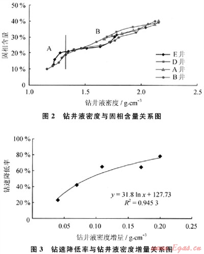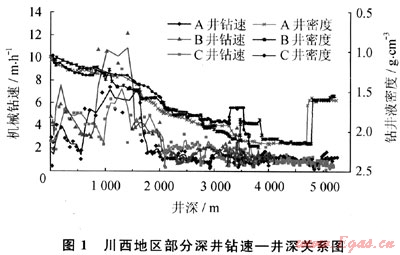 通過(guò)統(tǒng)計(jì)分析川西地區(qū)5口深井實(shí)鉆資料,認(rèn)為以下鉆井液因素對(duì)鉆速存在影響。