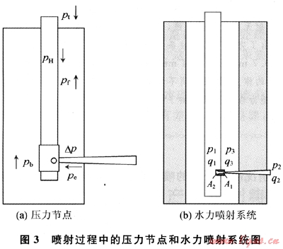 水力噴射逐層壓裂工藝不使用封隔器,就可以實現(xiàn)多層壓裂。其所依賴的機理就是在噴嘴出口處形成的負壓導(dǎo)引流體轉(zhuǎn)向,只進入射孔孔道中而不會進入到已經(jīng)壓開的層段。因此,環(huán)空壓力的控制是關(guān)鍵(圖3-b)。