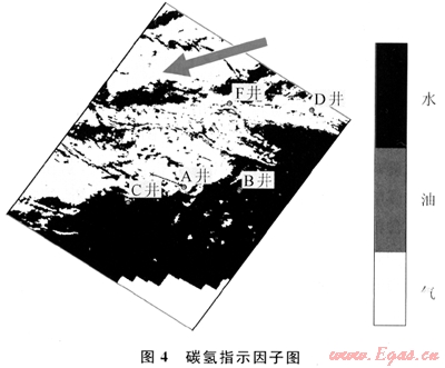對比反演結(jié)果圖,發(fā)現(xiàn)圖4指示的含氣范圍(黃色區(qū)域)、氣水界面以及與各井含油氣性與實鉆結(jié)果吻合。需要強調(diào)的是:該技術(shù)對B井的預(yù)測與實鉆結(jié)果吻合,更接近地質(zhì)認識。但是PY地區(qū)F井北部有一處面積達20km2的高含氣區(qū)(箭頭所示),需要進一步評價、落實該地區(qū)的含油氣性。