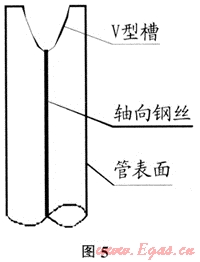 管口毛刺、翻邊清理完成后,為防止碰頭完成后天然氣沿骨架與PE材料之間空隙竄動而損傷管道本體,需對斷口管壁開槽、填料進(jìn)行封堵,用砂輪機(jī)將斷口管壁磨成V形或U形(如圖5),采用與復(fù)合管母材相同材質(zhì)的PE焊條用熱風(fēng)機(jī)同時加熱母材與焊條,當(dāng)焊條與母材融化發(fā)軟時,將焊條壓入V形槽,注意須先將焊條氧化層打磨掉,封堵應(yīng)將骨架完全覆蓋。在開槽時會有火花及粒狀或粉狀PE材料飛濺,施工人員應(yīng)佩帶好防塵護(hù)具。