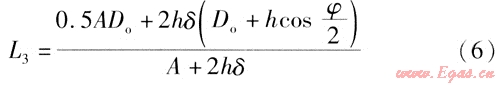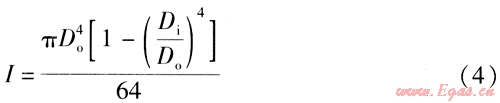 已知參數(shù)為:Do=478mm,Di=460mm,δ=18mm,h=250mm,φ=16°。將已知參數(shù)代入,由式(4)、(5)計算得,I=36474cm4,W=1586cm3。