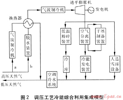效率。據(jù)此,建立了調(diào)壓工藝?yán)淠芫C合利用的集成模型,見圖2。