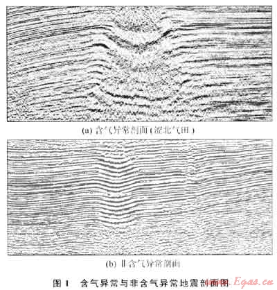 如圖1-a所示,在三湖地區(qū)地震剖面上出現(xiàn)的低頻、同相軸下拉現(xiàn)象是典型的含氣識(shí)別標(biāo)志。在圖1-b所示的地震資料異常與圖1-a含氣地震響應(yīng)類似,但鉆探的結(jié)果未發(fā)現(xiàn)工業(yè)氣流。通過(guò)對(duì)該區(qū)域表層結(jié)構(gòu)的調(diào)查和分析認(rèn)識(shí)到,巨厚疏松的低降速帶也可以造成類似的地震異常[2]。如何有效識(shí)別近地表結(jié)構(gòu)引起的地震異常,一直未得到很好的解決。從技術(shù)上講,需要有效的方法來(lái)識(shí)別和區(qū)分近地表結(jié)構(gòu)引起的地震異常和地層含氣造成的地震異常,在識(shí)別的基礎(chǔ)上,采取一定的方法和措施對(duì)地表結(jié)構(gòu)異常帶來(lái)的地震異常進(jìn)行處理和消除。