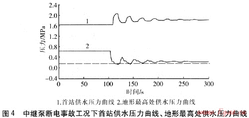 CJJ 34—2002《城市熱力網(wǎng)設(shè)計(jì)規(guī)范》第7.2.9、7.2.10條規(guī)定:“動(dòng)態(tài)水力分析應(yīng)對循環(huán)泵或中繼泵跳閘、輸送干線主閥門非正常關(guān)閉、熱源換熱器停止加熱等非正常操作發(fā)生時(shí)的壓力瞬變進(jìn)行分析。動(dòng)態(tài)水力分析后,應(yīng)根據(jù)分析結(jié)果采取下列相應(yīng)的主要安全保護(hù)措施:設(shè)置氮?dú)舛▔汗?;設(shè)置靜壓分區(qū)閥;設(shè)置緊急泄水閥;延長主閥關(guān)閉時(shí)間;循環(huán)泵、中繼泵與輸送干線的分段閥連鎖控制;提高管道和設(shè)備的承壓等級;適當(dāng)提高定壓或靜壓水平;增加事故補(bǔ)水能力。”