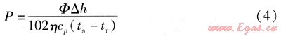 有壓熱水鍋爐供熱系統(tǒng)循環(huán)泵功率P的計(jì)算式為: