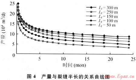4.2 裂縫半長對氣井產(chǎn)量的影響
