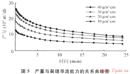 4.3 裂縫導(dǎo)流能力對氣井產(chǎn)量的影晌