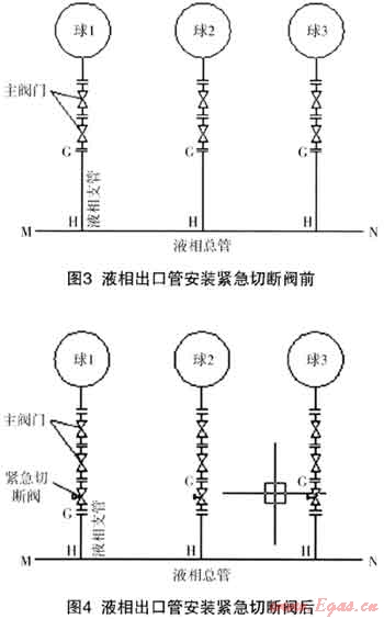 根據(jù)《氣瓶安全監(jiān)察規(guī)定》:《氣瓶充裝許可證》的有效期為4年;有效期滿前,氣瓶充裝單位應(yīng)當(dāng)向原審批部門申請更換《氣瓶充裝許可證》。我公司的液化石油氣儲灌站于2011年7月向河北省質(zhì)監(jiān)局提出《氣瓶充裝許可證》的換證申請;河北省特種設(shè)備學(xué)會于2011年11月對液化石油氣儲灌站進(jìn)行了現(xiàn)場評審。評審專家根據(jù)新版《城鎮(zhèn)燃?xì)庠O(shè)計規(guī)范》中關(guān)于對“液化石油氣儲罐上安全閥件的配置”,要求我液化石油氣儲灌站3座400m,的液化石油氣球罐的氣相管和液相出口管上的根部主閥門下加裝緊急切斷閥。