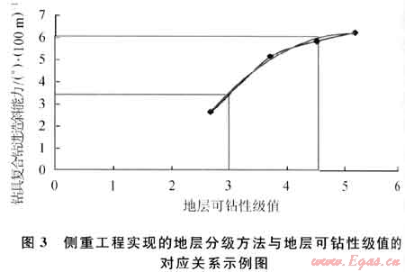 研究分析地層物性條件對(duì)水平井井眼軌跡的影響規(guī)律,至少需要解決2個(gè)問題:①地層物性條件的標(biāo)識(shí)問題,即如何將地層的各種物性特征按照統(tǒng)一標(biāo)準(zhǔn)歸類、分級(jí);②如何建立地層物性條件與井眼姿態(tài)參數(shù)(井斜角、方位角)的對(duì)應(yīng)關(guān)系。其中,地層物性條件的標(biāo)識(shí)問題可以從眾多的地層可鉆性分級(jí)方法中優(yōu)選;而對(duì)于第二個(gè)問題則可以利用統(tǒng)計(jì)分析的方法建立某一區(qū)塊特定鉆具組合在復(fù)合鉆進(jìn)方式下的鉆進(jìn)特性與地層物性的統(tǒng)計(jì)關(guān)系予以解決。