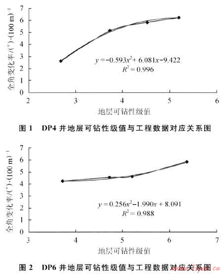 由圖1、2可以看出:①地層可鉆性級(jí)值與井眼全角變化率存在函數(shù)關(guān)系;②隨著地層可鉆性級(jí)值的增加,井眼全角變化率遞增。