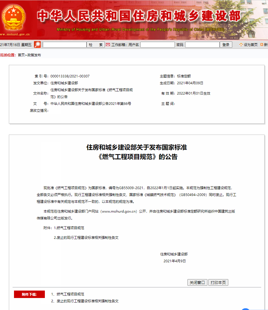燃氣工程項目規(guī)范GB55009-2021無水印及WORD版下載