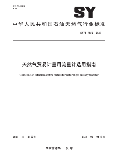 本標(biāo)準(zhǔn)適用于新建或改建的,標(biāo)準(zhǔn)參比條件下流量不低于100m/h、工作壓力不低于0.1MPa (表壓)的流量計(jì)量系統(tǒng)中流量計(jì)選用。其他計(jì)量系統(tǒng)可參照本標(biāo)準(zhǔn)執(zhí)行。