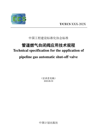 根據(jù)中國(guó)工程建設(shè)標(biāo)準(zhǔn)化協(xié)會(huì)《關(guān)于印發(fā)<2017年第二批工程建設(shè)協(xié)會(huì)標(biāo)準(zhǔn)制訂、修訂計(jì)劃>的通知》(建標(biāo)協(xié)字〔2017〕031號(hào))的要求,由中國(guó)市政工程華北設(shè)計(jì)研究總院有限公司等單位編制的《管道燃?xì)庾蚤]閥應(yīng)用技術(shù)規(guī)程》,經(jīng)協(xié)會(huì)城鎮(zhèn)燃?xì)鈱I(yè)委員會(huì)組織審查,現(xiàn)批準(zhǔn)發(fā)布,編號(hào)為T/CECS 905-2021,自2022年1月1日起施行。