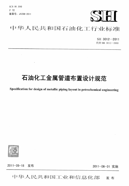 石油化工金屬管道布置設計規(guī)范 SH 3012-2011 共分13章。