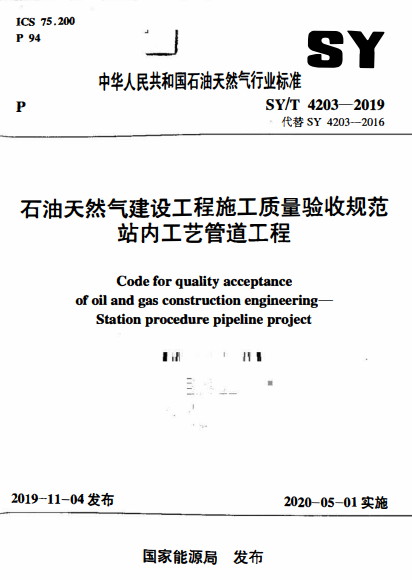 石油天然氣建設(shè)工程施工質(zhì)量驗(yàn)收規(guī)范 站內(nèi)工藝管道工程SY/T 4203-2019