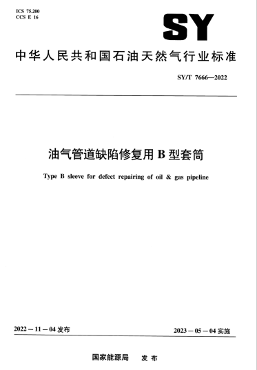 油氣管道缺陷修復(fù)用B型套筒SY/T 7666-2022 :本文件規(guī)定了 L485/X70 及以下鋼級(jí) B 型套簡(jiǎn)的設(shè)計(jì)及制造,試驗(yàn)及檢驗(yàn),外觀檢驗(yàn),無(wú)損檢測(cè)、標(biāo)識(shí),產(chǎn)品質(zhì)量證明文件,包裝、運(yùn)輸和使用等。