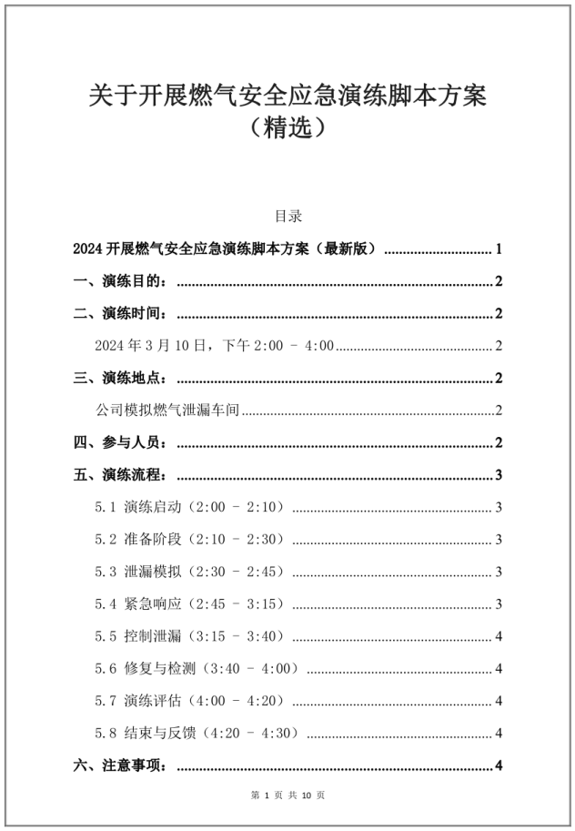 為了提高我公司應對燃氣泄漏等緊急情況的能力,確保員工生命安全和公司財產不受損失,根據年度安全工作計劃,現決定于2024年3月10日下午2:00至4:00,在公司模擬燃氣泄漏應急演練中心舉行燃氣安全應急演練?,F將有關事項通知如下: